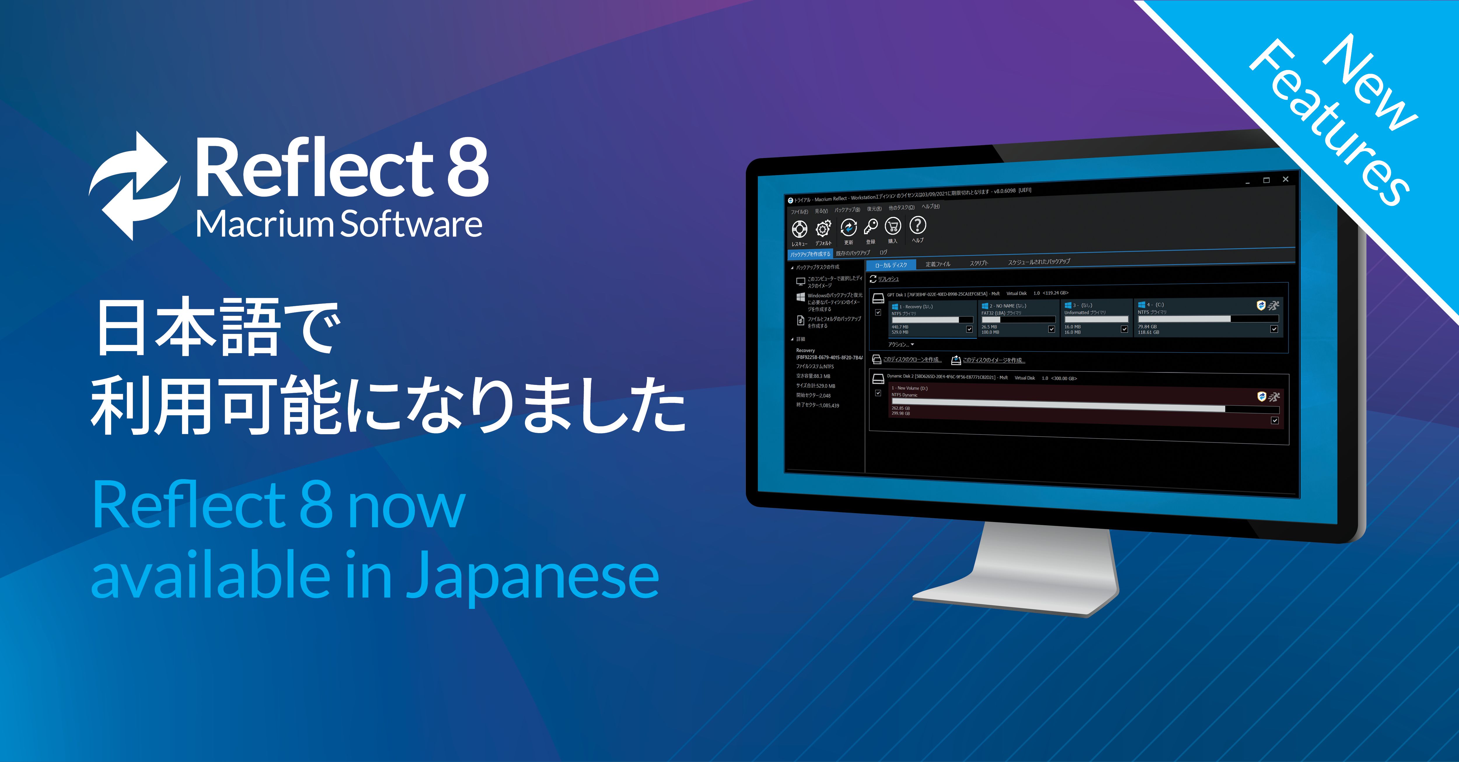 We're delighted to announce that Macrium Reflect is available in Japanese for all existing purchasers of version 8....